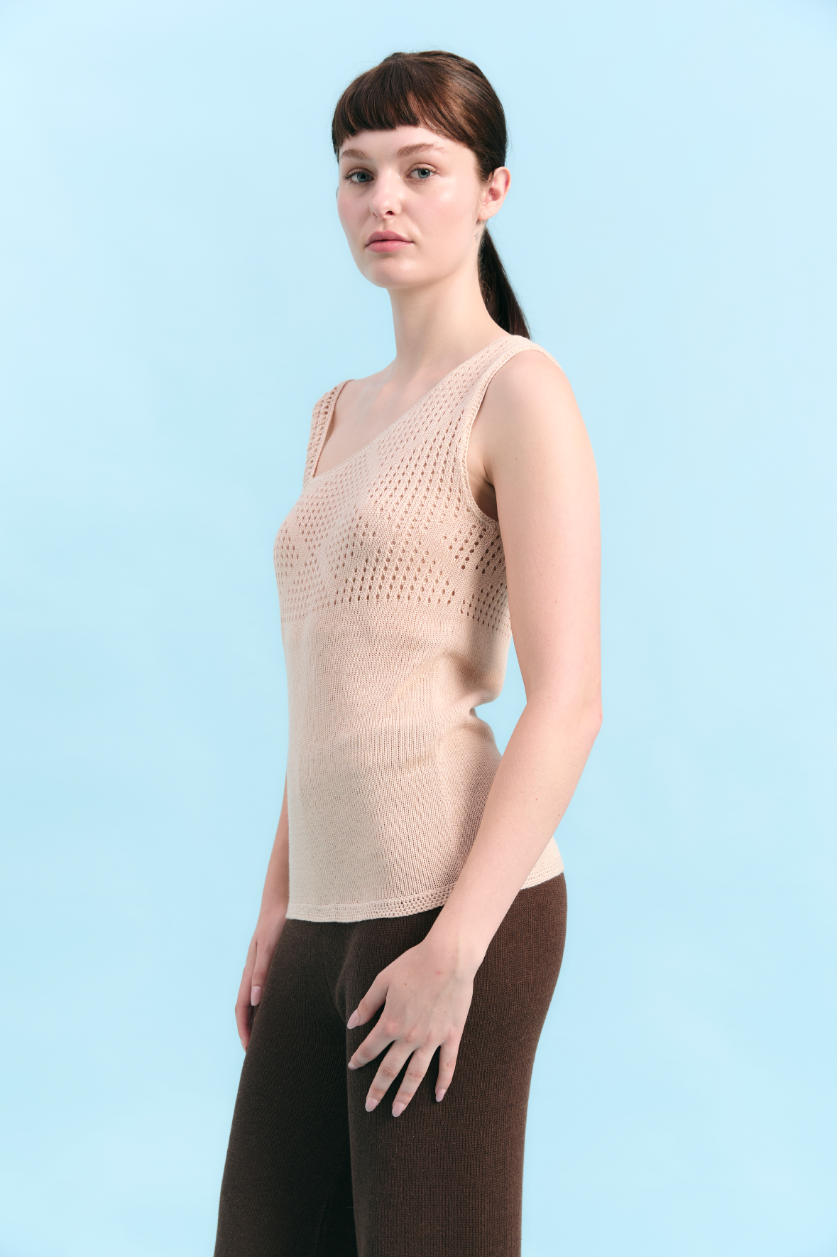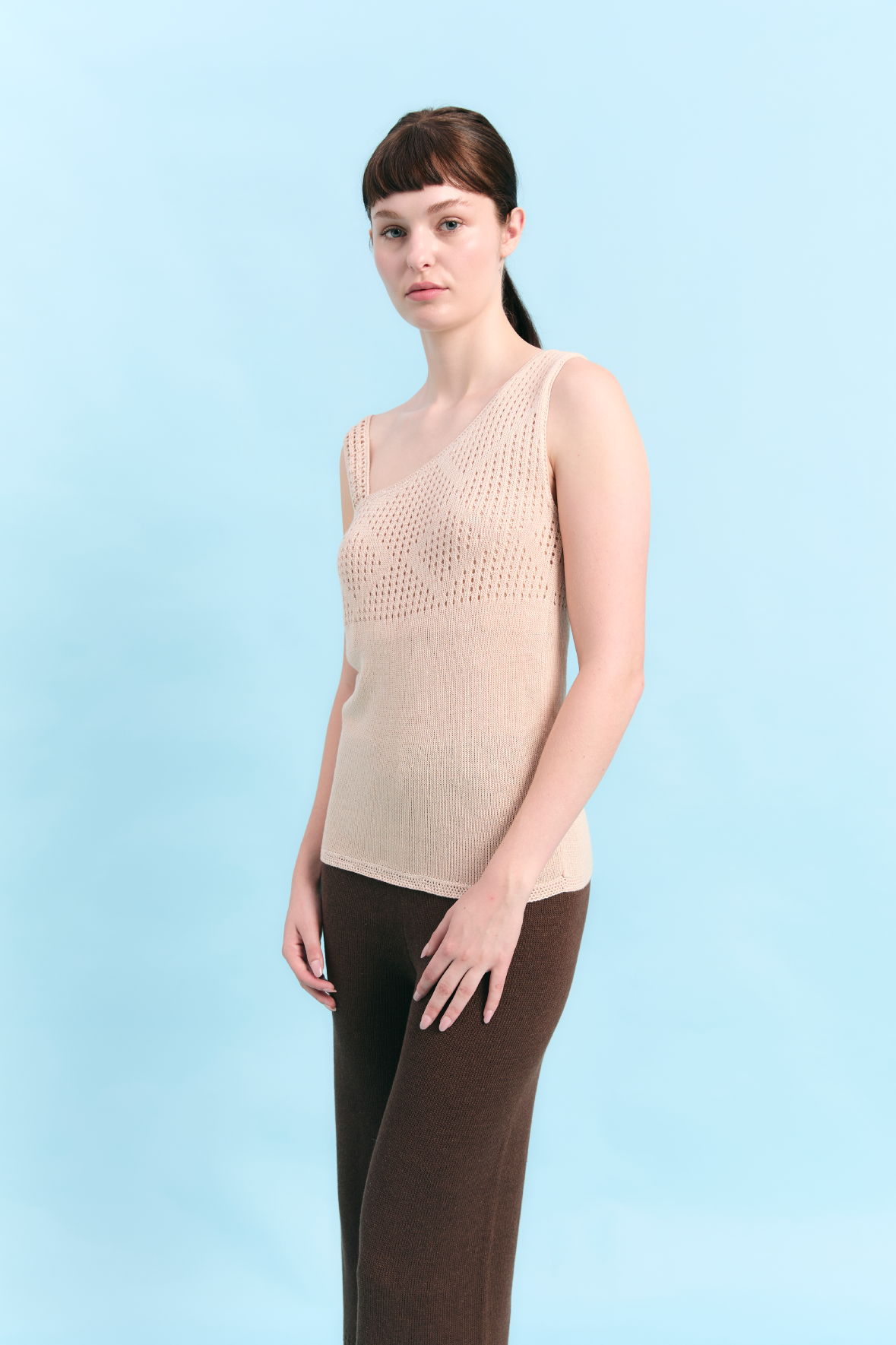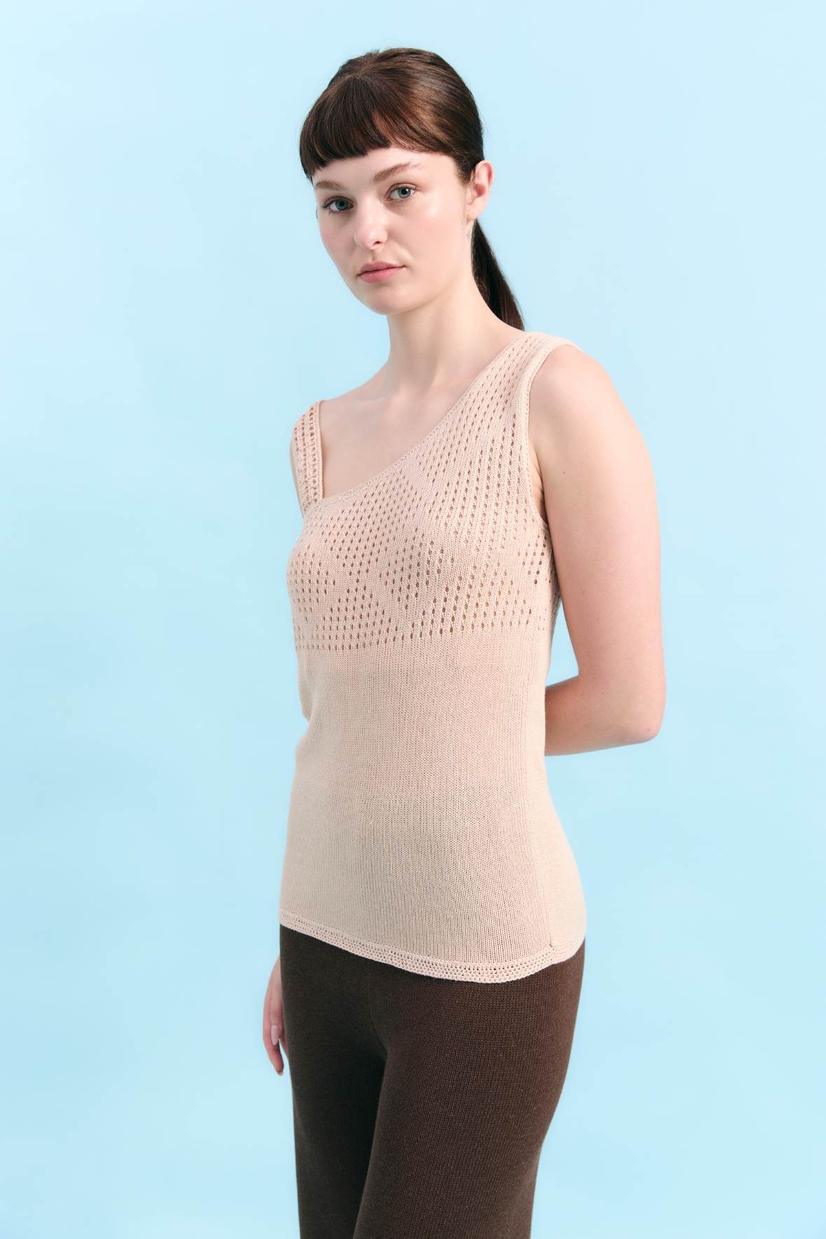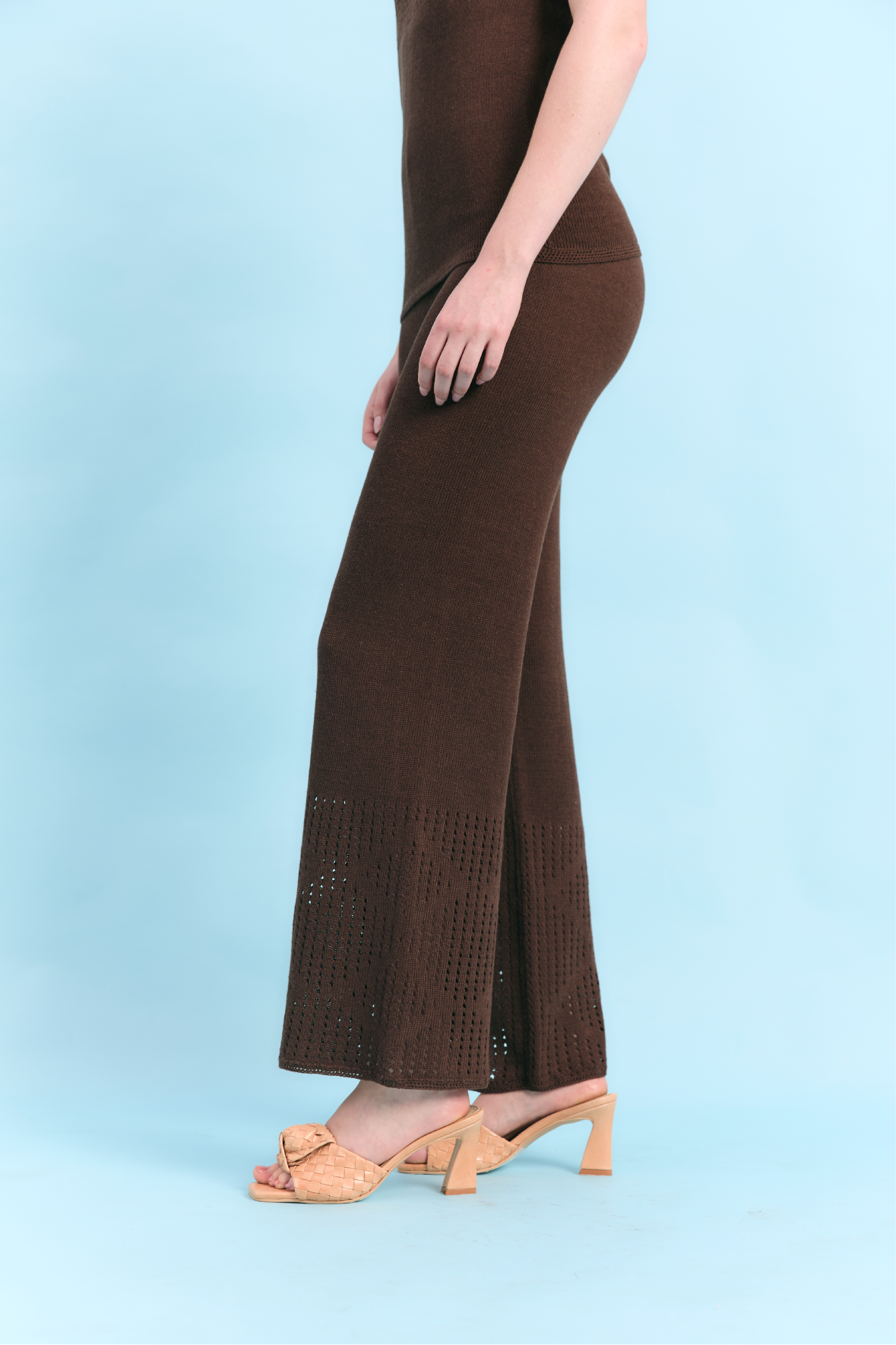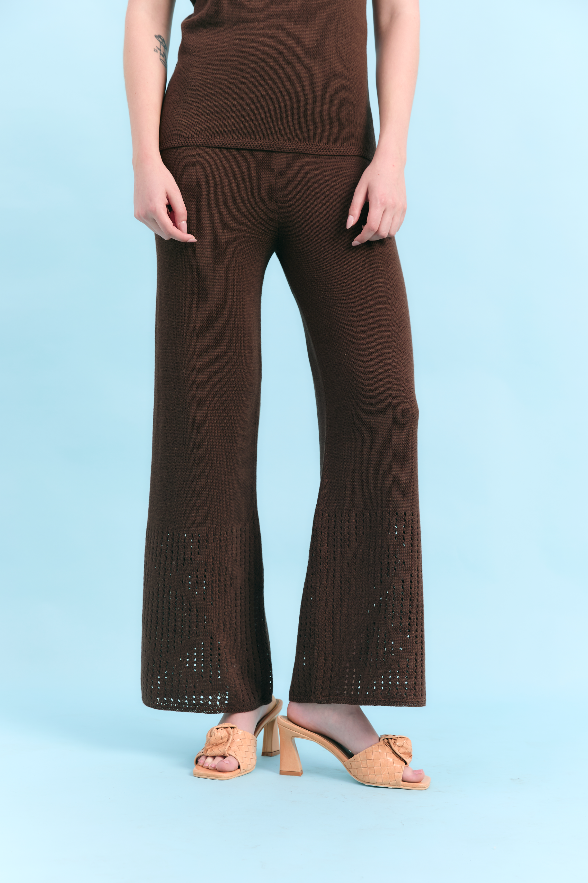 Pantalón recto de silueta relajada que transmite equilibrio y calma. Sus calados geométricos aportan textura y ligereza, mientras la caída fluida evoca el mar tranquilo del atardecer. Una pieza cómoda y elegante, diseñada para acompañar el cuerpo con libertad y una sensación constante de frescura.